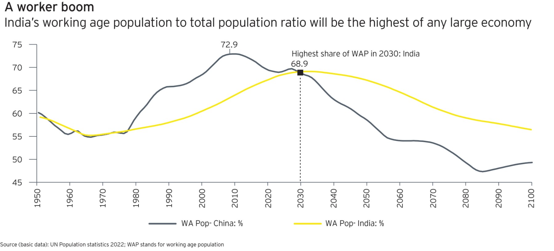 Another major advantage that India offers to businesses is its large and diverse consumer base. India has a population of over 1.3 billion people,and this presents a huge market for businesses looking to expand their operations. India’s middle class is growing rapidly, and this presents a huge opportunity for businesses in various sectors, including retail, healthcare, and education. Also, India would remain the largest provider of human resources in the world. About 24.3% of the incremental global workforce over the next decade will come from India.